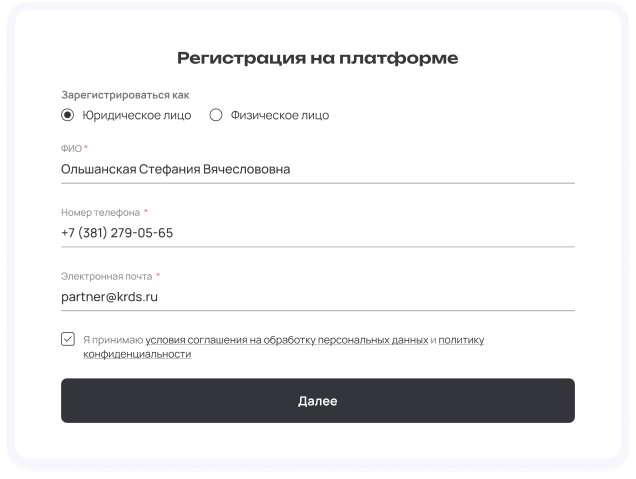 Заполните регистрационную форму: Введите Ваше имя, адрес электронной почты, телефон и создайте пароль для учетной записи.