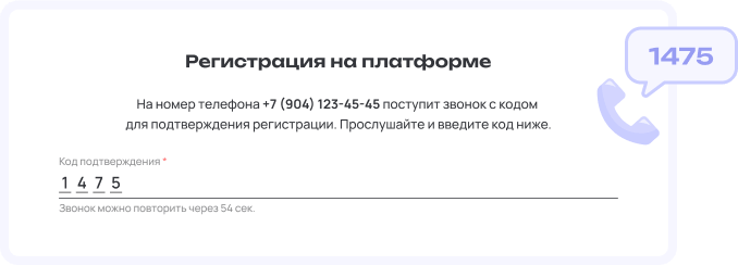 На Ваш номер телефона поступит звонок с кодом. Прослушайте и введите его в строку подтверждения регистрации.